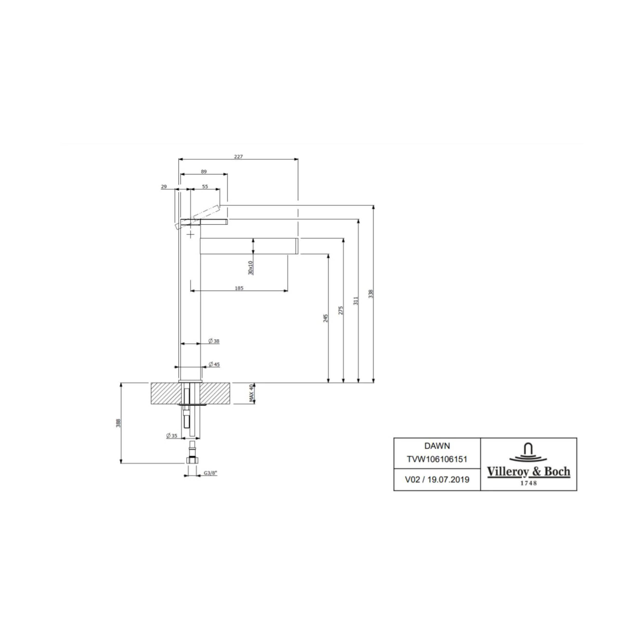 Maisītājs DAWN, izlietnei, augstais, bez pop-up, black matt, VILLEROY&BOCH